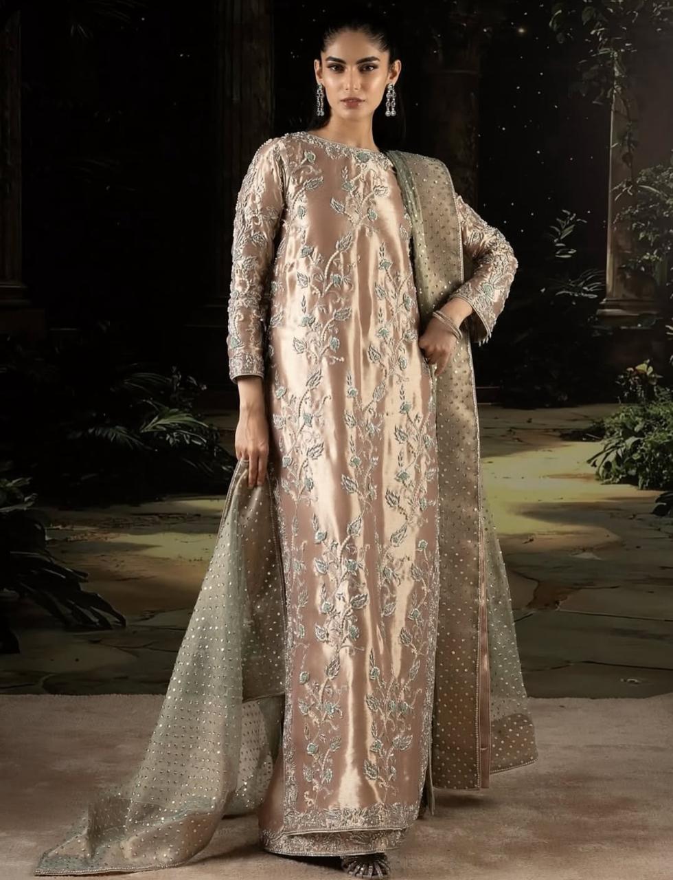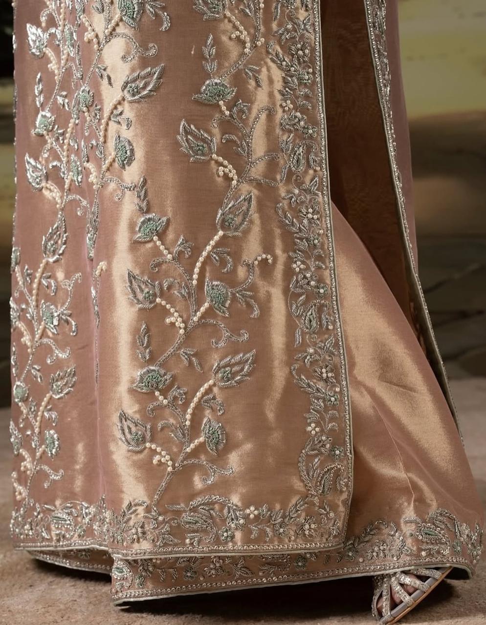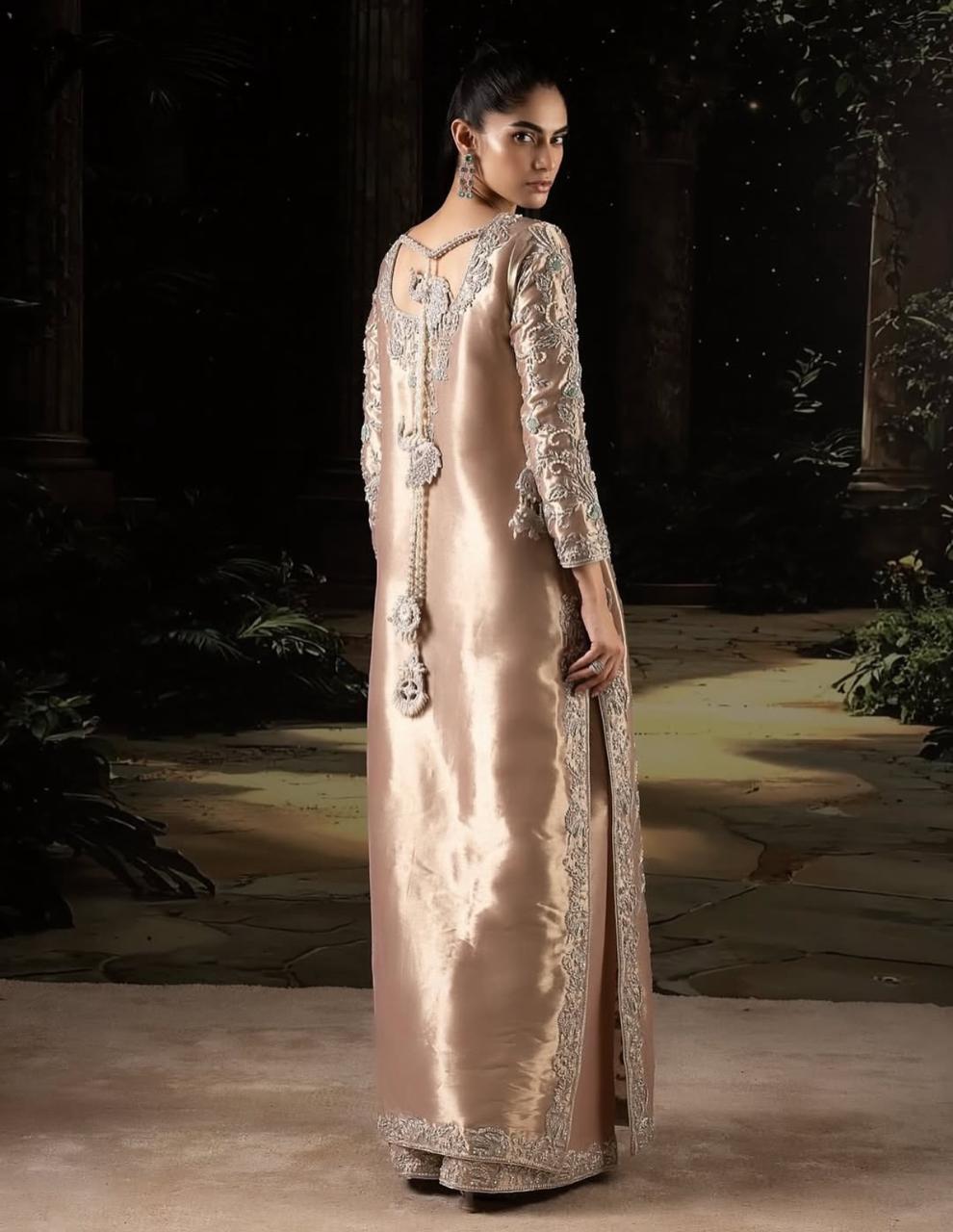 Long Shirt Fabric Tissue Hand Made Work Designer By Shahzad Sheikh