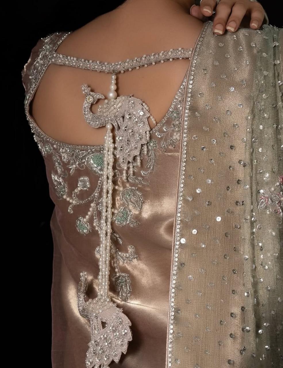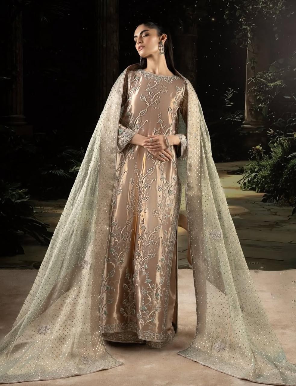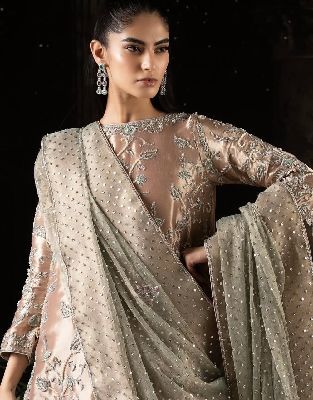 Long Shirt Fabric Tissue Hand Made Work Designer By Shahzad Sheikh