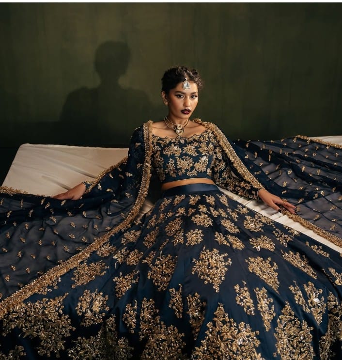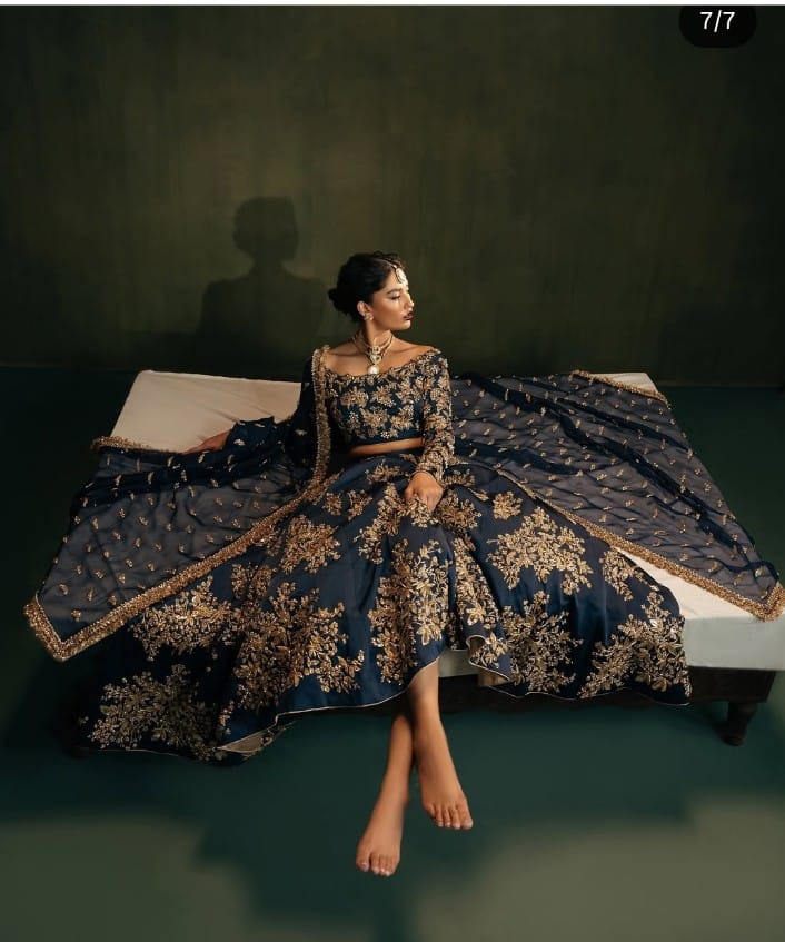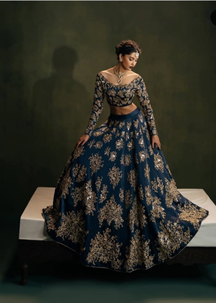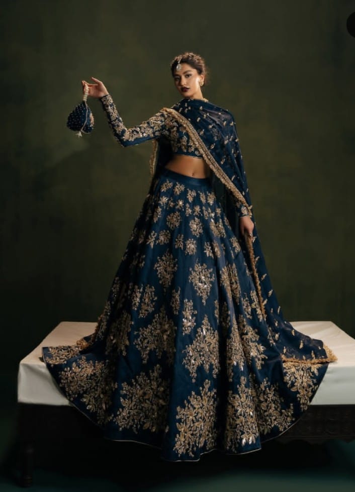 Teal Blue Lengha Choli Hand Made Work Fabric Tasel Silk And Organza Designer By Shahzad Sheikh Price On Call